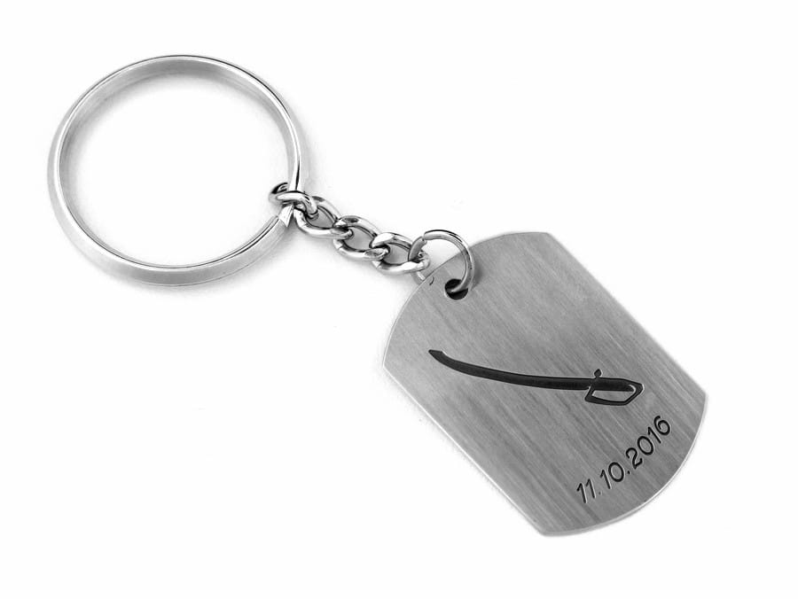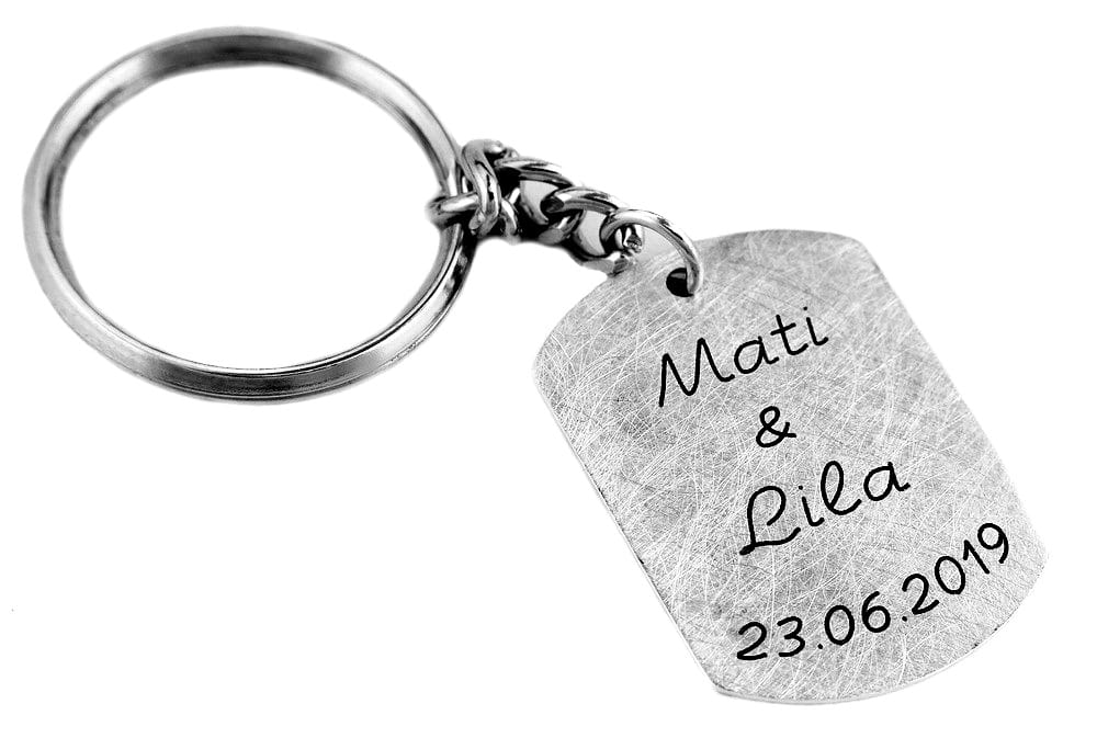Breloczek do kluczy według pomysłu klientki. Blaszka z serduszkiem ( lub bez ) i grawerunkiem wykonana ze srebra pr. 925. Łańcuszek i duże kółeczko są innego z metalu. Takie połączenie daje tańsze i bardziej trwałe zapięcie niż wykonane w całości ze srebra . Literki są frezowane, głębokie i zaczernione oksydą do srebra. Taki grawerunek to najtrwalsza możliwa forma. Powierzchnia z obu stron jest wykończona na matowo a boki są błyszczące. Literki można zostawić też jasne, lekko błyszczące tak jak na ostatnim zdjęciu. Projekt grawerunku układamy wg życzenia klienta i zawsze wysyłamy do oceny i akceptacji.