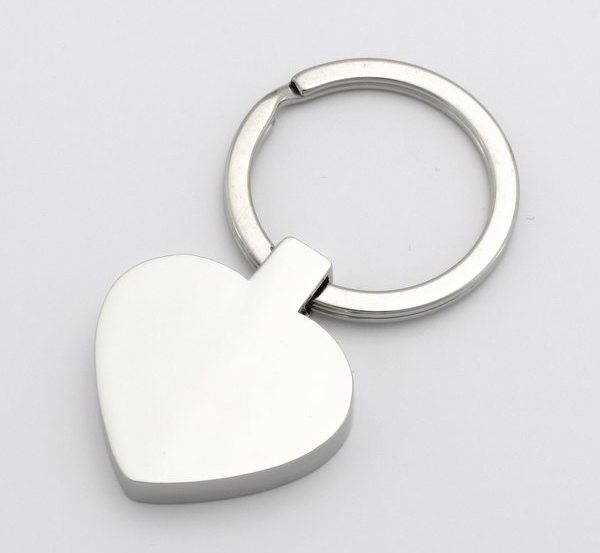 Elegancki, niklowany breloczek do kluczy w kształcie serca.