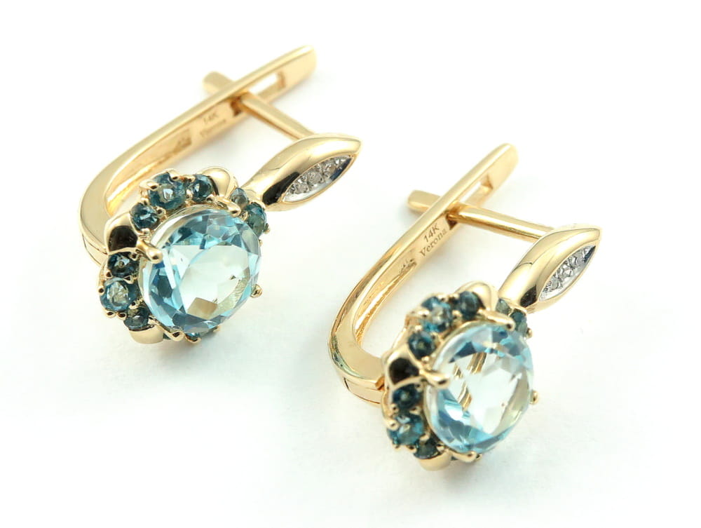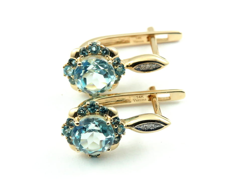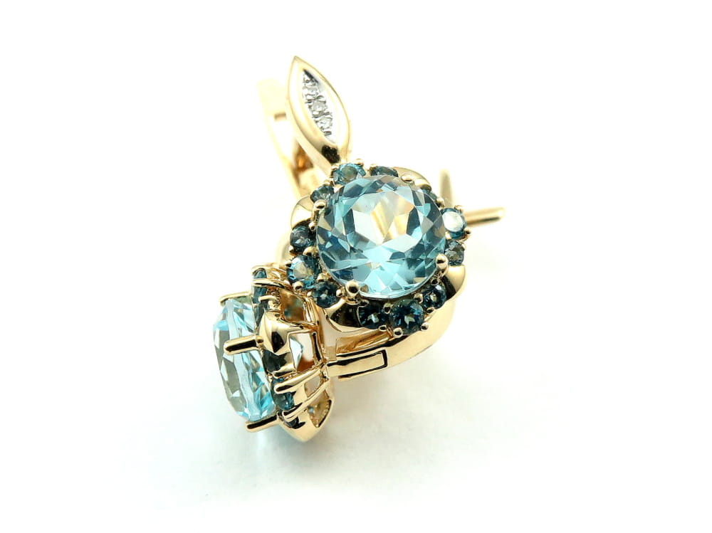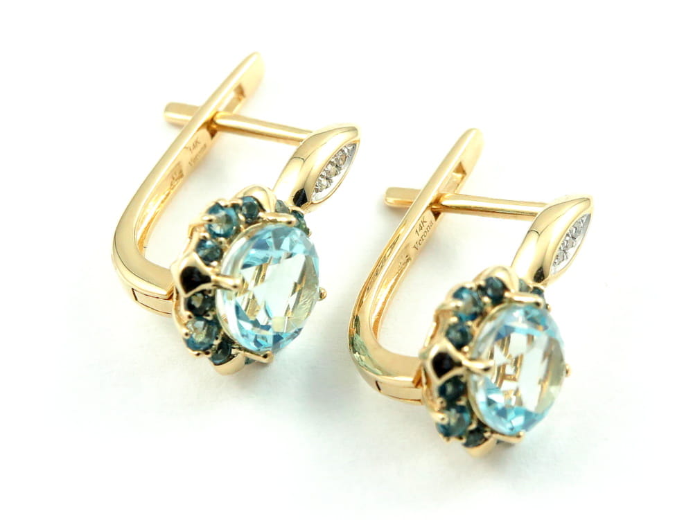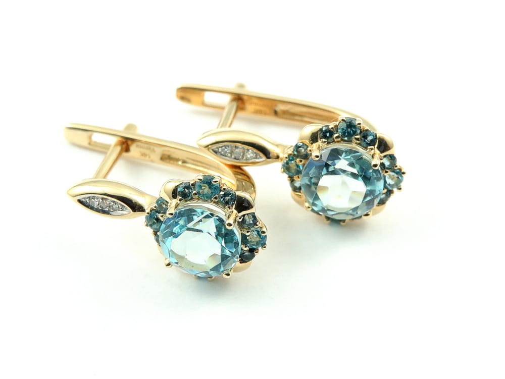 Kolczyki z diamentami i z topazami Sky Blue i London Blue