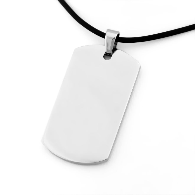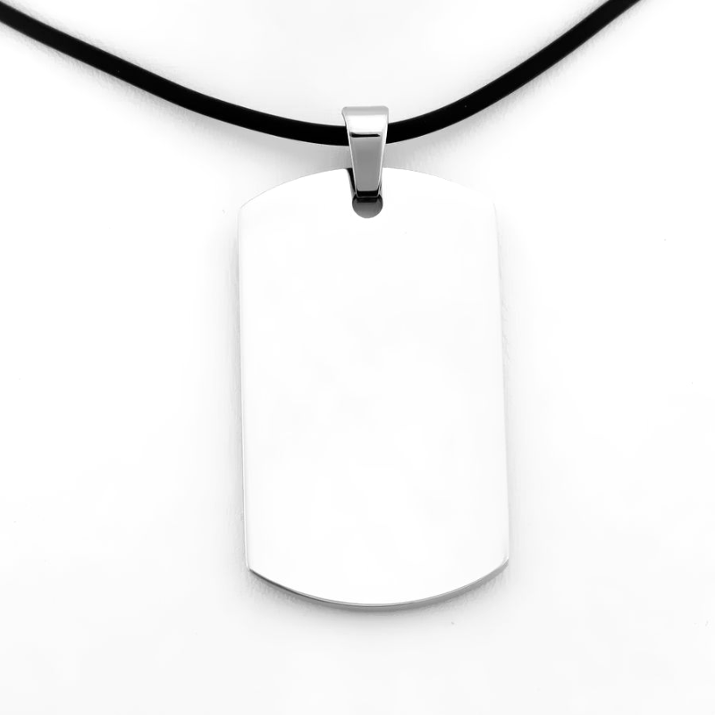 Niezwykle solidna zawieszka do łańcuszka, wykonana ze stali szlachetnej. Wykorzystany materiał zapewnia pełną antyalergiczność a główną jego zaletą jest wysoka trwałość i odporność na działanie czynników mechanicznych i chemicznych jak perfumy i detergenty. W odróżnieniu od biżuterii ze srebra powierzchnia stali szlachetnej nie będzie pokrywać się patyną. Dlatego właśnie zawieszki ze stali idealnie nadają się pod grawerunek zdjęć. Wisiorki ze stali szlachetnej posiadają jeszcze jedną ważną zaletę. Jest to jednolity materiał w całej swej objętości. Wyroby te nie są niczym powlekane i dzięki temu nie ma tutaj efektu "wytarcia się" z czasem wierzchniej warstwy, jak w przypadku zawieszek rodowanych. Przelotka na łańcuszek wykonana jest masywna i zapewnia niebywałą trwałość. Zawieszka posiada z obu stron gładkie, polerowane wykończenie, a przelotka jest na tyle duża, że spokojnie pozwoli na zawieszenie na łańcuszku nawet o bardzo grubym i szerokim splocie. (dla porównania przykładowy, czarny naszyjnik widoczny na zdjęciu ma średnicę 2 mm).