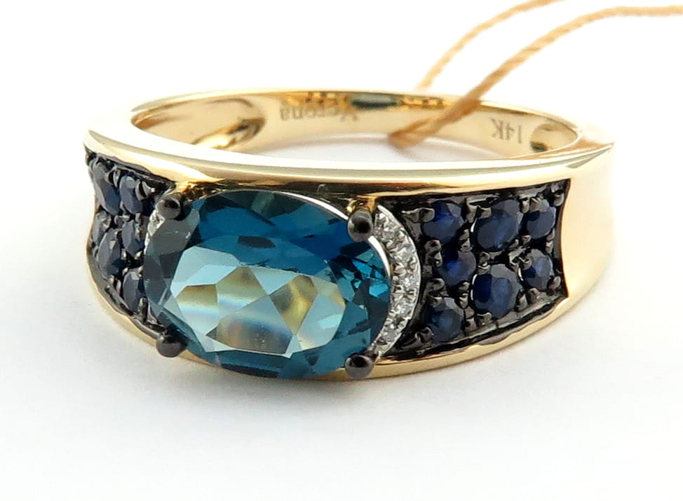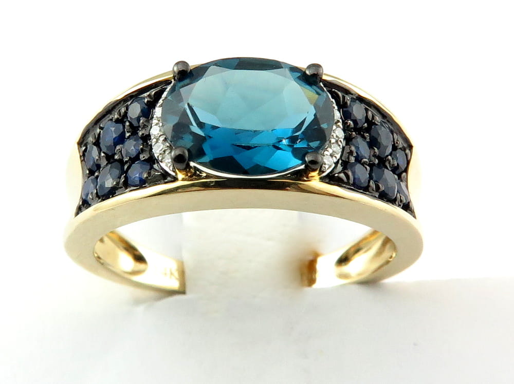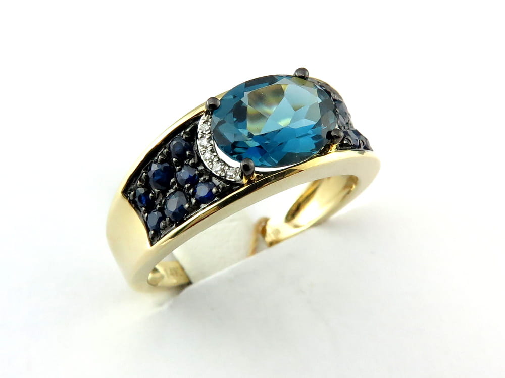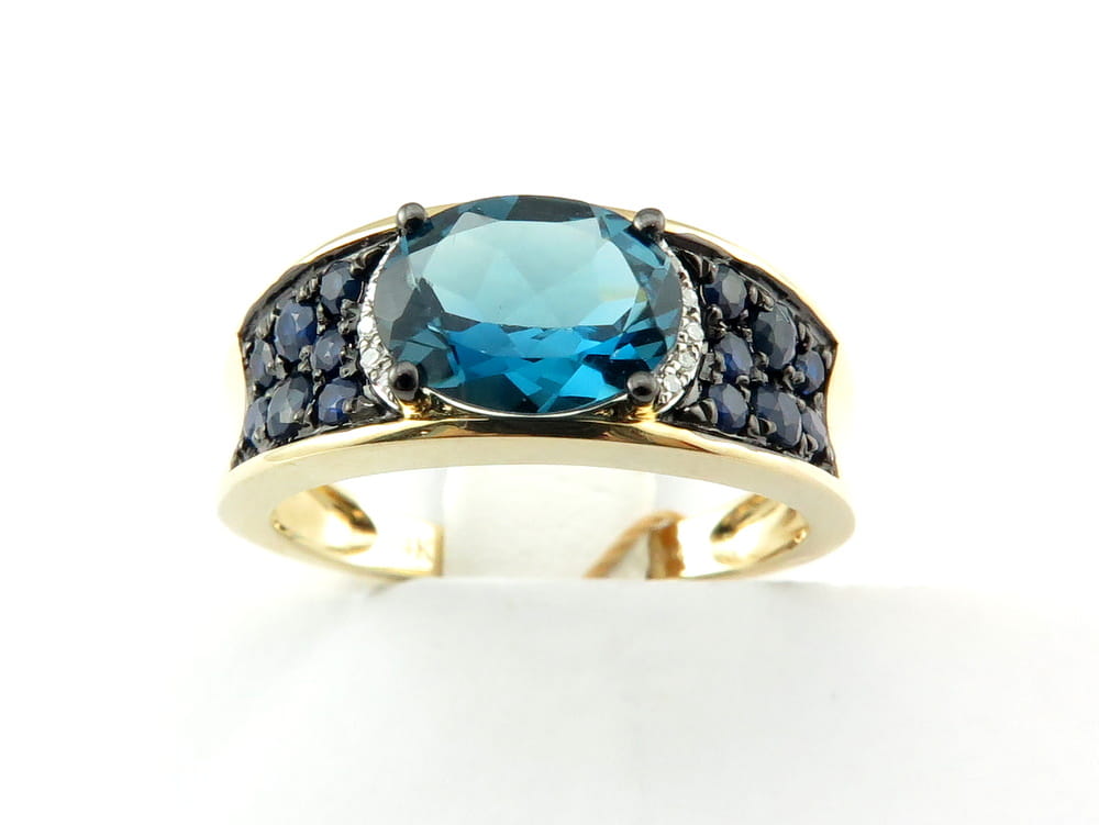 Pierścionek z diamentami, szafirami i topazem London Blue