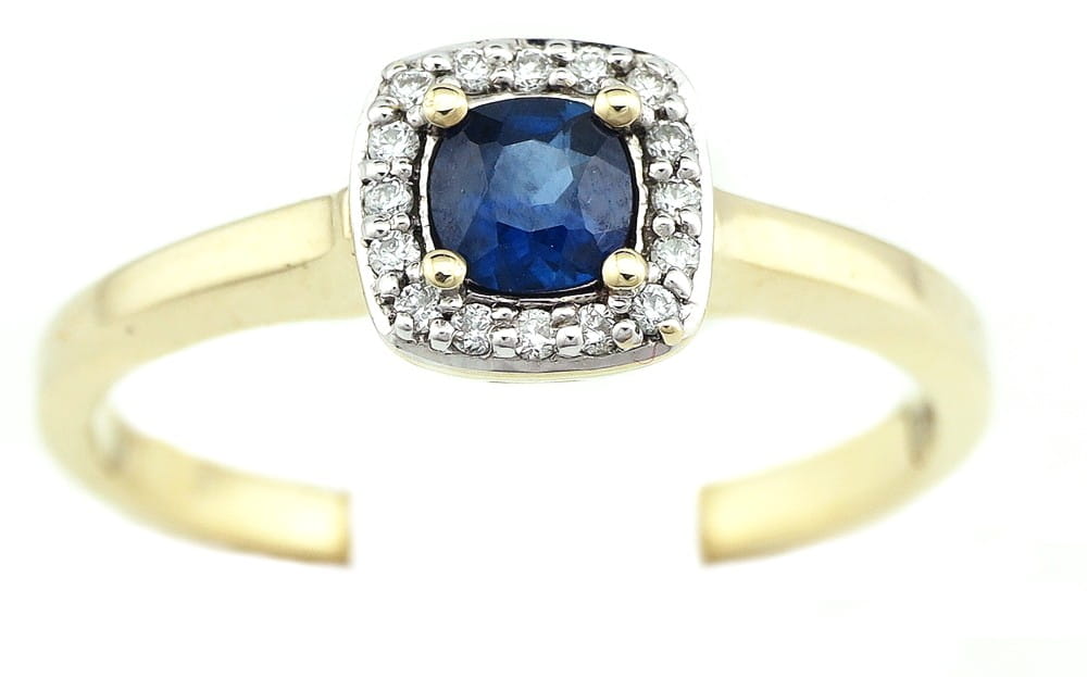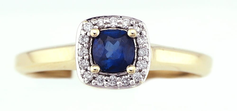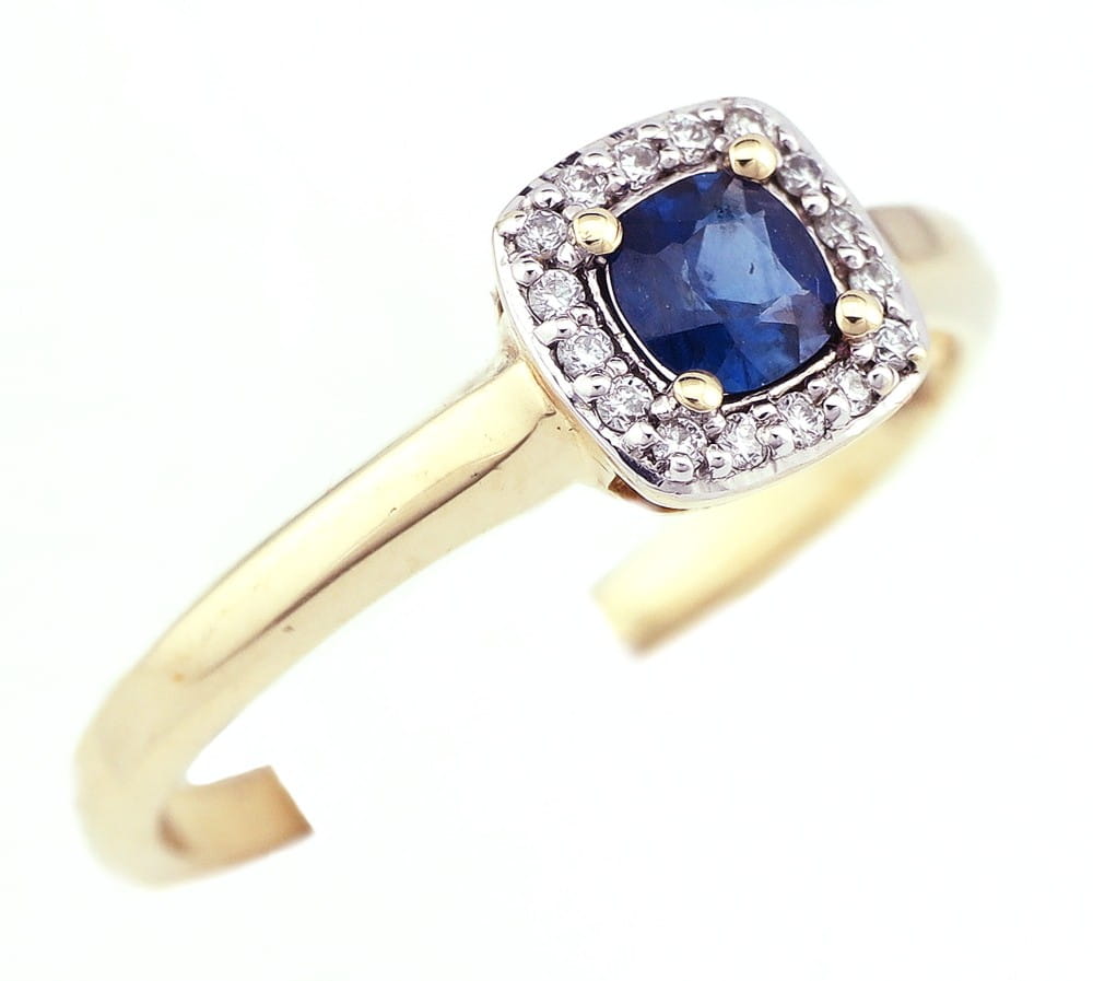 Pierścionek z diamentami i szafirem
