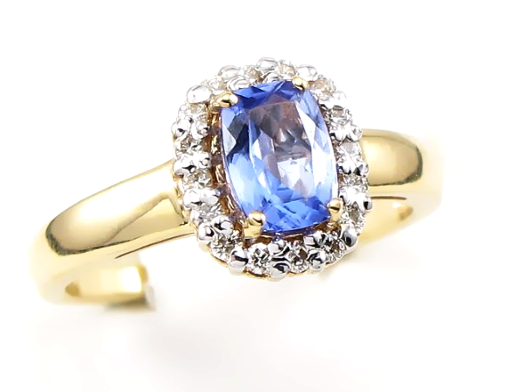 Pierścionek z diamentami i tanzanitem