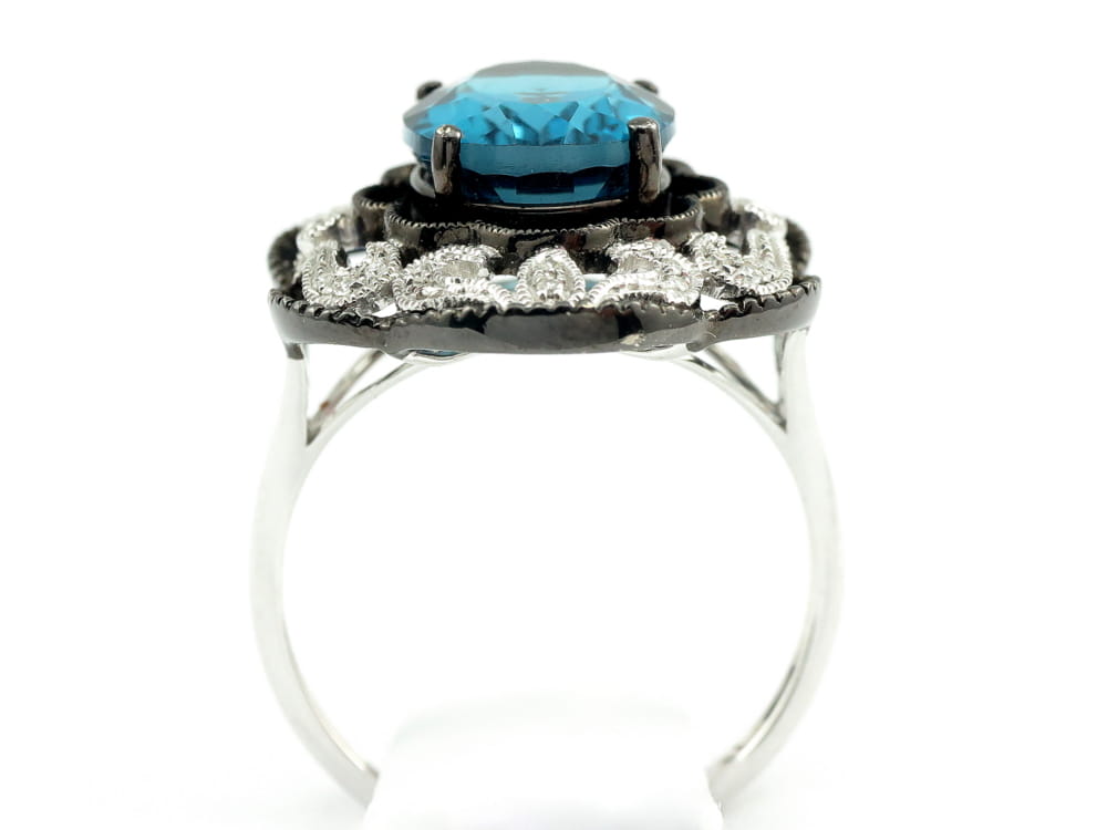 Pierścionek z diamentami i topazem London Blue
