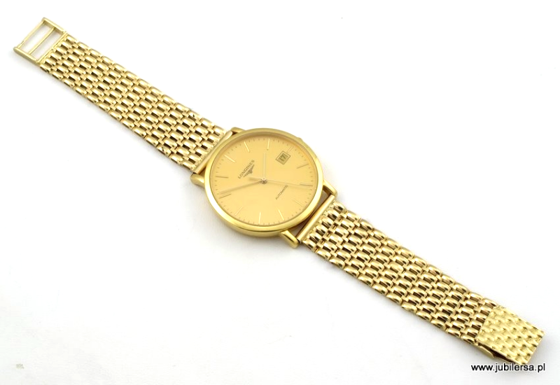 Przedstawiamy przykład złotej bransolety, oferowanej do sprzedaży w naszym sklepie, dopasowanej do męskiego złotego zegarka. Złota bransoleta do zegarka wykonana jest z 14 karatowego złota, którego kolor idealnie pasuje do prezentowanego tutaj modelu zegarka. Kolor bransolety bardzo dobrze pasuje do zdecydowanej większości złotych zegarków, których koperta jest wykonana z żółtego złota. Bransoletki kolorem pasują zarówno do próby złota 585 jak i 750.