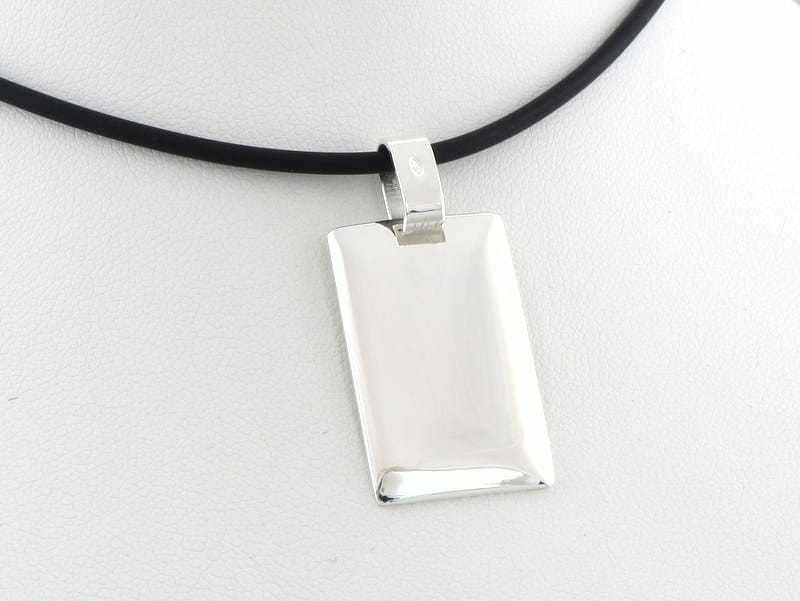 Przywieszka na łańcuszek kształcie nieśmiertelnika, wykonana ze srebra próby 925. Duże uszko pozwala na dopasowanie nawet do łańcuszków o grubym splocie.