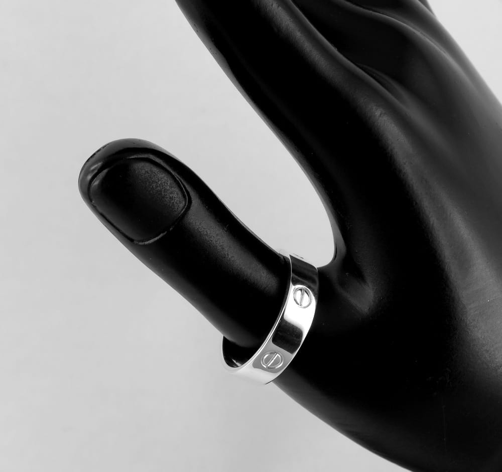 Taką obrączkę zamówił u nas klient. Przesłał przykładowe zdjęcie jako wzór i wykonaliśmy w podonym stylu komplet obrączek wg wskazanych rozmiarów. Grawerowany z zewnątrz wzór sześciu naciętych krążków przypominających łepki śrub został rozmieszczony symetrycznie wzdłuż obwodu. Sama obrączka wykończona jest ma błysk. Grawerowane głębiej miejsca można dodatkowo przyciemnić i górę obrączki ewentualnie wykończyć na matowo. Przed realizacją wykonaliśmy projekt obrączki do oceny i okresliślimy szacunkowy koszt. Klient zdcydował się zamówić od razu komplet, co obniżyło koszt całego zlecenia. Jeśli szukają Państwo obrączki lub obrączek z głębokim grawerunkiem wykomanym w podobnej technice, prosimy o kontakt. Szerokość obrączki jaki wzór grawerunku ustalamy indywidualnie. Model nazdjęciach ma szerokość około 5,5 mm.