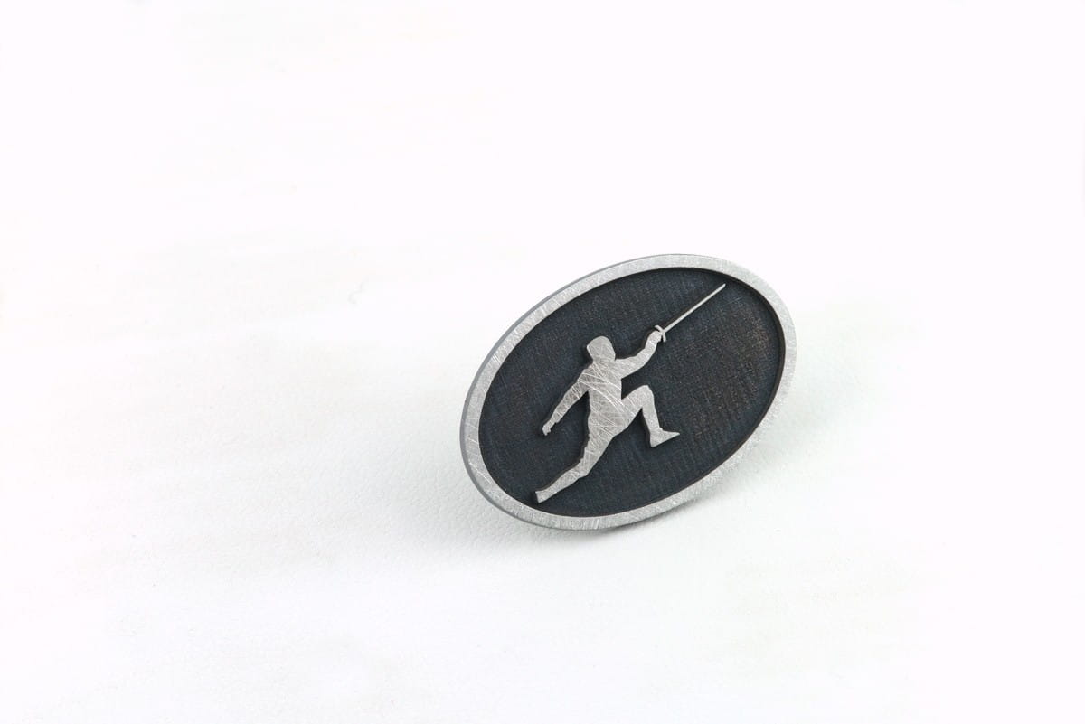 Srebrna przypinka do marynarki - Szermierz