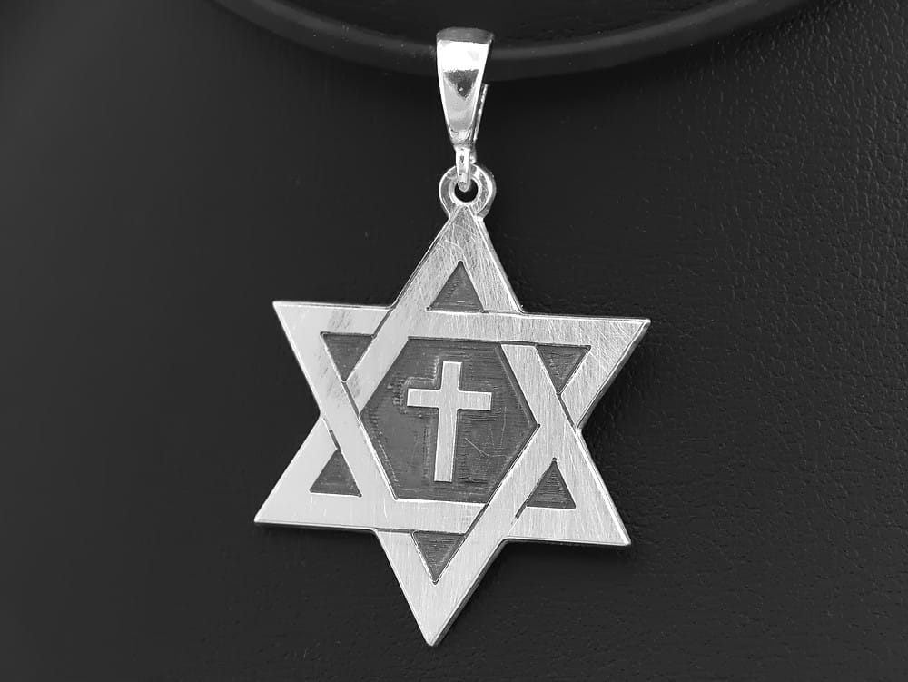 Srebrna zawieszka Gwiazda Dawida z krzyżem