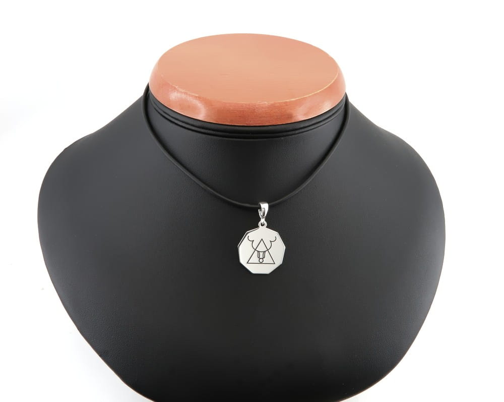 Srebrna zawieszka wykonany wg pomyłsłu klienta. Przesłał do nas emailem odręczny rysunek, który wymagał nieco wyprosotowania i ostatecznie uzyskaliśmy projekt jakiego klient oczekiwał. Dobraliśmy rozmiar zawieszki pasujący do postury i wykonaliśmy wisiorek ze srebra. Z przodu wygrawerony głęboko jest wspomniany symbol.