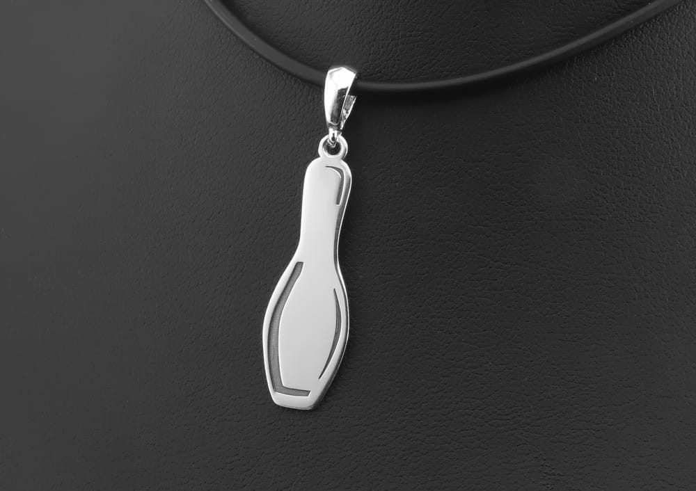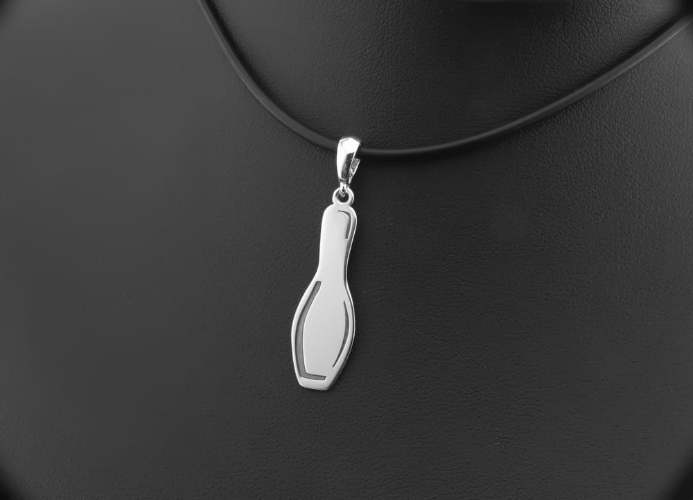 Srebrna zawieszka w kształcie kręgla. Wykonaliśmy ją na zamówienia klienta. Wpólnie ustaliliśmy wielkości i formę kręgla. Po akceptacji projektu przystąpiliśmy do pracy. Na dzień następny zawieszka była gotowa do wysyłki. Forma zawieszki jest stosunkowo prosta, ale bardzo czytelna i estetycznie wykonana.