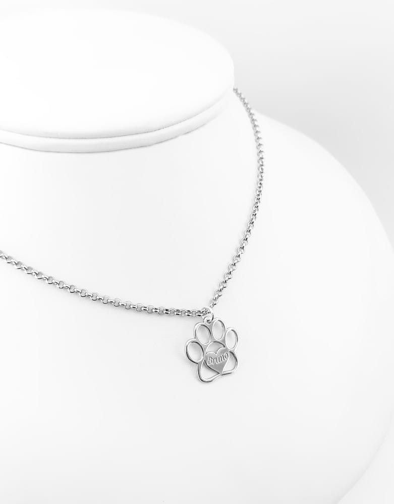Właściciele czworonogów są jedną z naszych ulubionych grup klientów, to dzięki nam w naszej pracowni pojawia się masa zdjęć przyjaznych psich mordek. Naszą alternatywną propozycją do wizerunku psa jest zawieszka w kształcie psiej łapki z wygrawerowanym imieniem pupila. Taką też zawieszkę wykonaliśmy na życzenie klientki. Ze srebrnego materiału w próbie 925 wycięliśmy ażurową formę w kształcie psiej łapki, w miejscu poduszeczki umieściliśmy serduszko a w nim zostało wygrawerowane imie pupila. Cały wisiorek został wykończony na wysoki połysk.