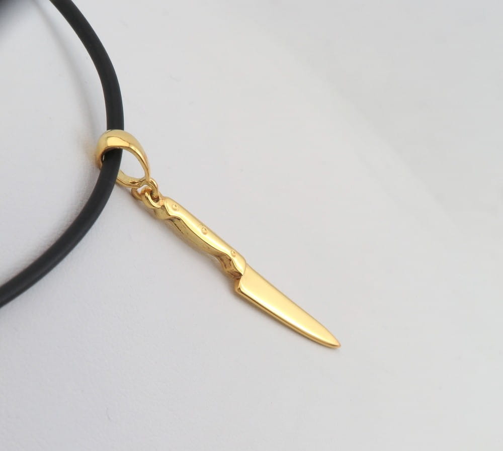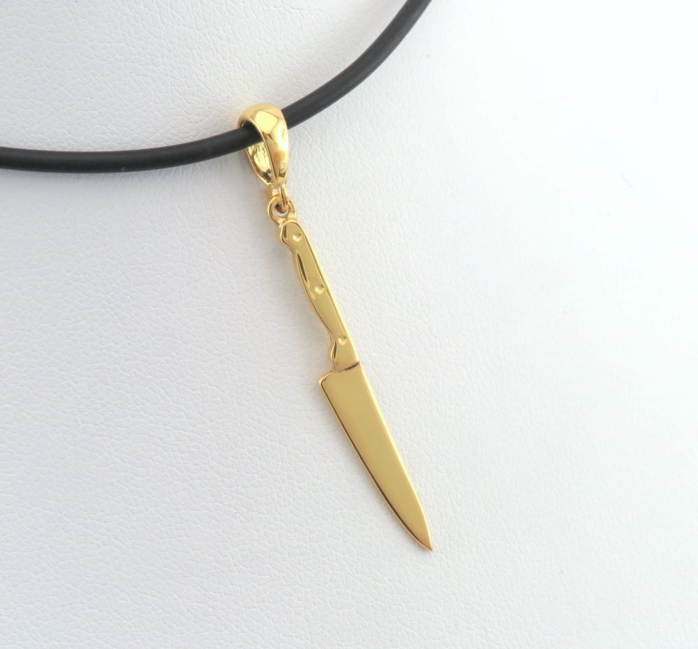 Srebrna złocona zawieszka nóż kuchenny