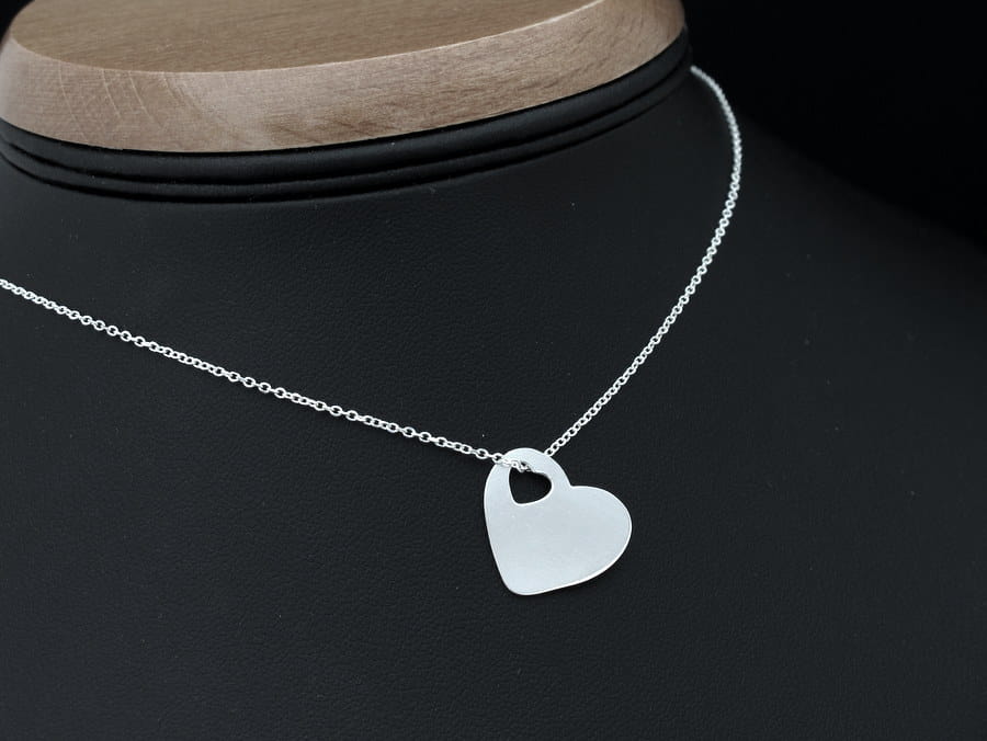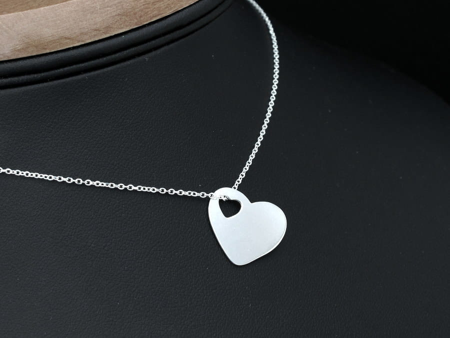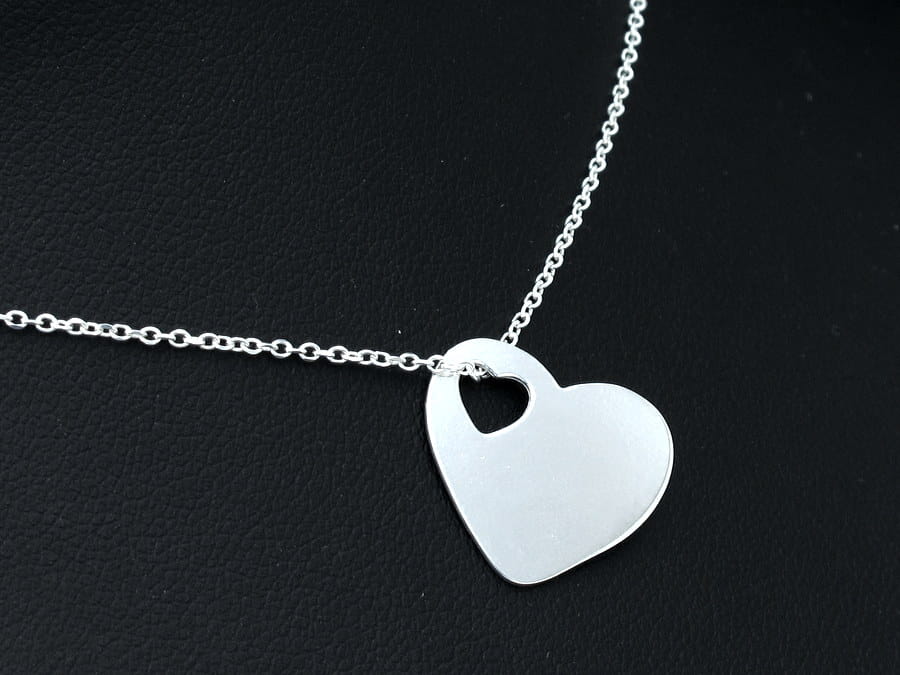 Srebrna zawieszka do łańcuszka kształcie serduszka. Wisiorek zakłada się poprzez mały otworek również w kształcie serca. Forma zawieszki i sposób zakładania, sprawiają, że nadaje się ona do kompletu do drobniejszych splotów łańcuszków. Zawieszka wykonana jest ze srebra pr 925. Na obu stronach można wykonać grawerunek tekstu, rysunku lub zdjęcia. Serduszko ma 17,5mm szerokości.