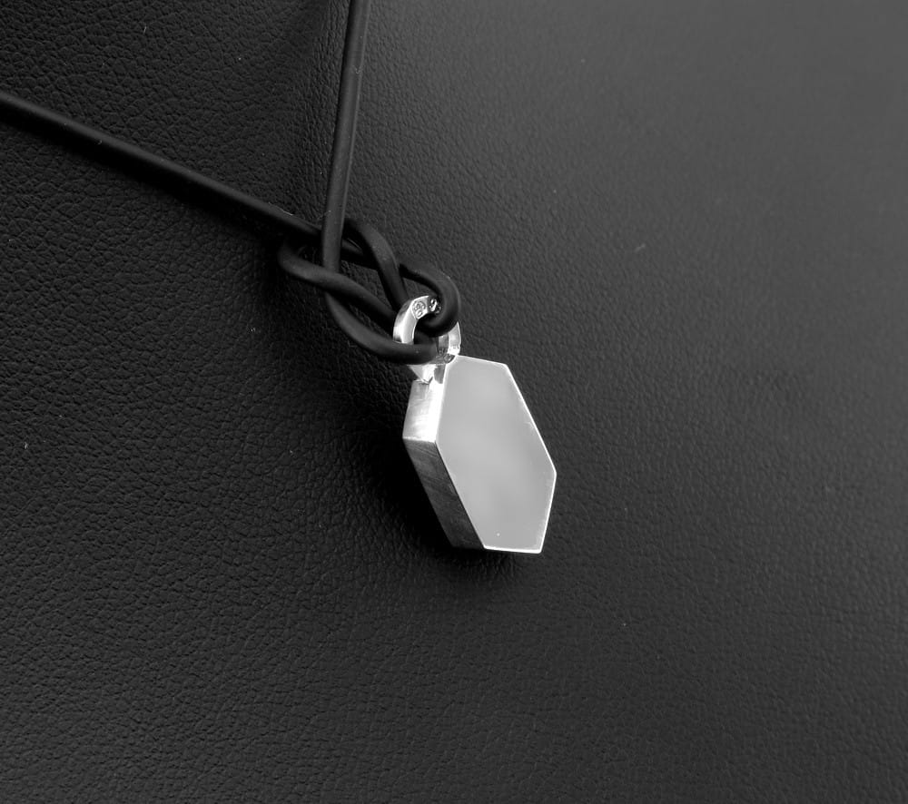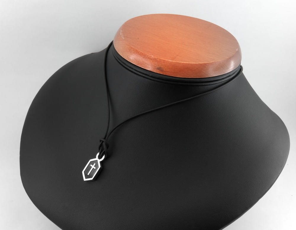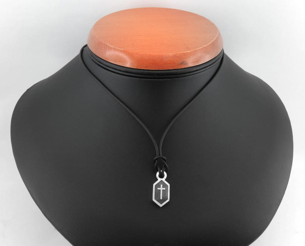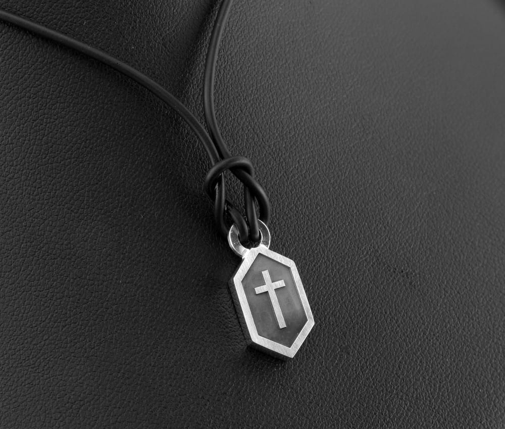 Klient zamówił poprzednio podobną zawieszkę, nieco szerszą, z symbolem ryby, a tym razem zamówił z samym krzyżem, węższą ale za to grubszą , bo z arkusza 3mm. Z frontu wygrawerowany na wyskok jest krzyż a tło przyciemnione oksydą. Otwór kółeczka dobrany jest tak by pomieścić w środku cieniutku rzemyk. Rozmiar i kształt dopasowaliśmy wedug życzenia klienta. Po wykonaniu zawieszki przesłaliśmy zdjęcia do oceny. Całość wykonana jest ze srebra pr. 925. Jeśli spodobała się Państwu forma zawieszki i szukają Państwo czegoś w podobym stylu, prosimy o kontkat. Przed realizacją wykonamy indywidualny projekt i ustalimy orientacyjny koszt.