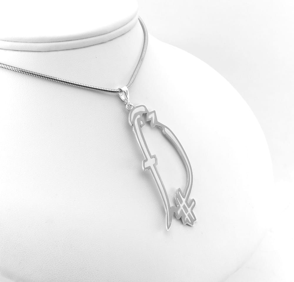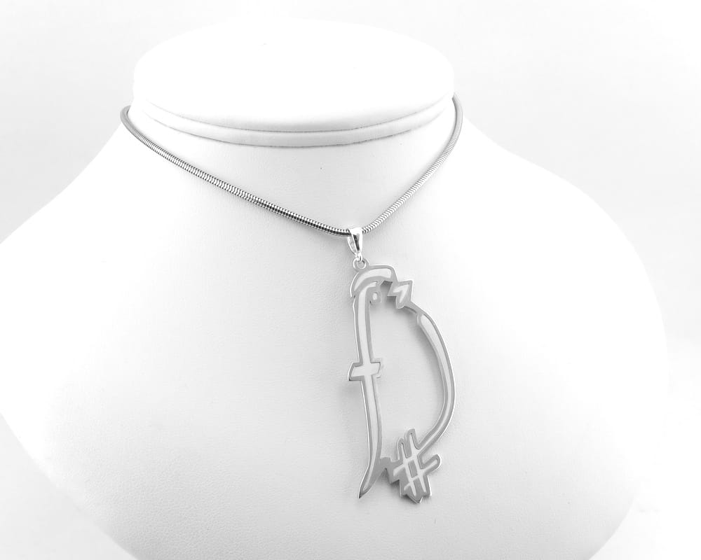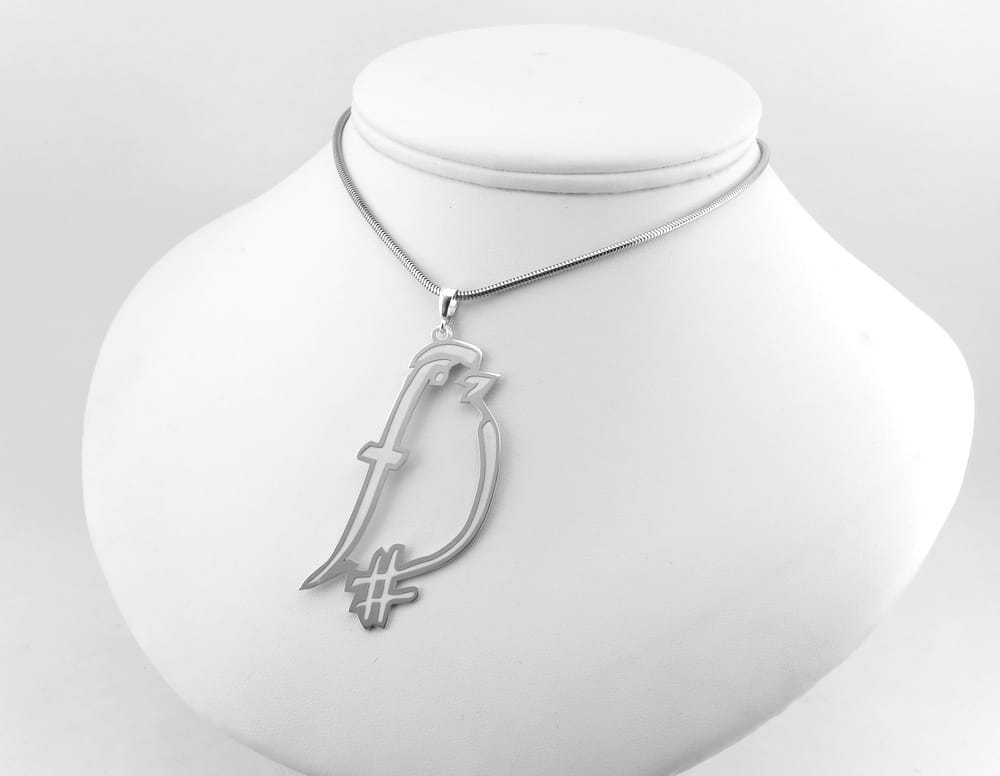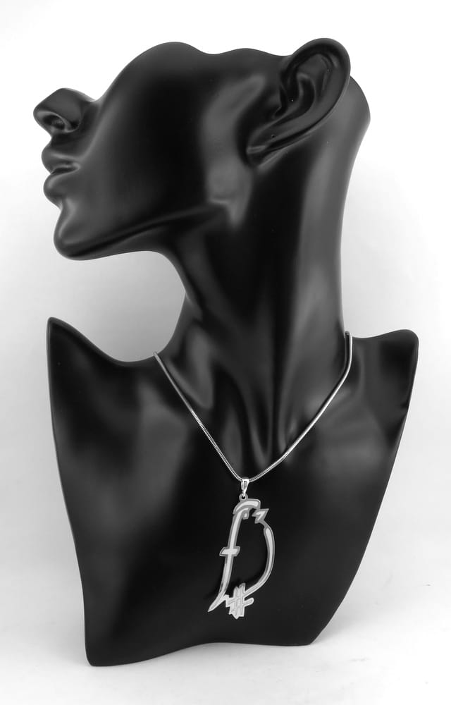 To już drugi model skowronka wg logo chóru. Poprzednio wykonaliśmy dwie broszki w nieco mniejszym rozmiarze. Tym razem klientka zamówiła długi naszyjnik z większym modelem zawieszki. Sam skowronek ma około 6 cm wysokości. Łańcuszek dobrany do kompletu ma 75 cm. Całość wykonana jest ze srebra a na konturze skowronka jest głebiej grawerowany wzorek. Cały komplet został wypolerwany. Sprawa była pilna więc wykonaliśmy zlecenie ekspresowo wciągu jednego dnia. Wcześniej ustaliliśmy mailowo projekt i wielkość zawieszki oraz dobraliśmy pasujący splot i wielkość łańcuszka. Jeśli szukają Państwo naszyjnika wykonanego w podobnym stylu prosimy o kontakt. Pomożemy przygotowac indywidualny projekt i dobierzemy odpowiedni łańcuszek do kompletu.