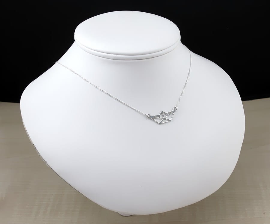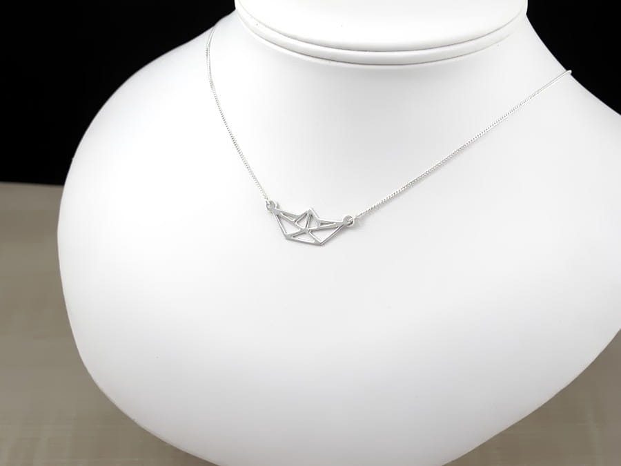 Tak jak w poprzednim modelu wykonaliśmy zawieszkę do łańcuszka wg zdjęcia przesłanego przez klientkę, a następnie zamocowaliśmy łódeczkę do srebrnego łańcuszka klientki. Wymiary zawieszki ustalone z klientką i wysłane wcześniej w formie projektu do oceny. Całość ze srebra 925.