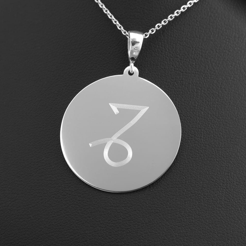 Okrągła przywieszka na łańcuszek wykonana ze srebra próby 925. Wykonana jest w całości ręcznie w naszej pracowni złotniczej. Duża przelotka pozwala na dopasowanie nawet do łańcuszków o grubym splocie, Zewnętrzne kółeczko pozwala wykorzystać całą powierzchnię na zaprojektowany dla klienta runiczny grawerunek. Powierzchnia zawieszki jest obu stron wypolerowana, specjalnie przygotowana pod grawerunek, ale na życzenie możemy nadać jej również matowe wykończenie. Sam grawerunek jest błyszczący i zarazem przyjemny dla oka.