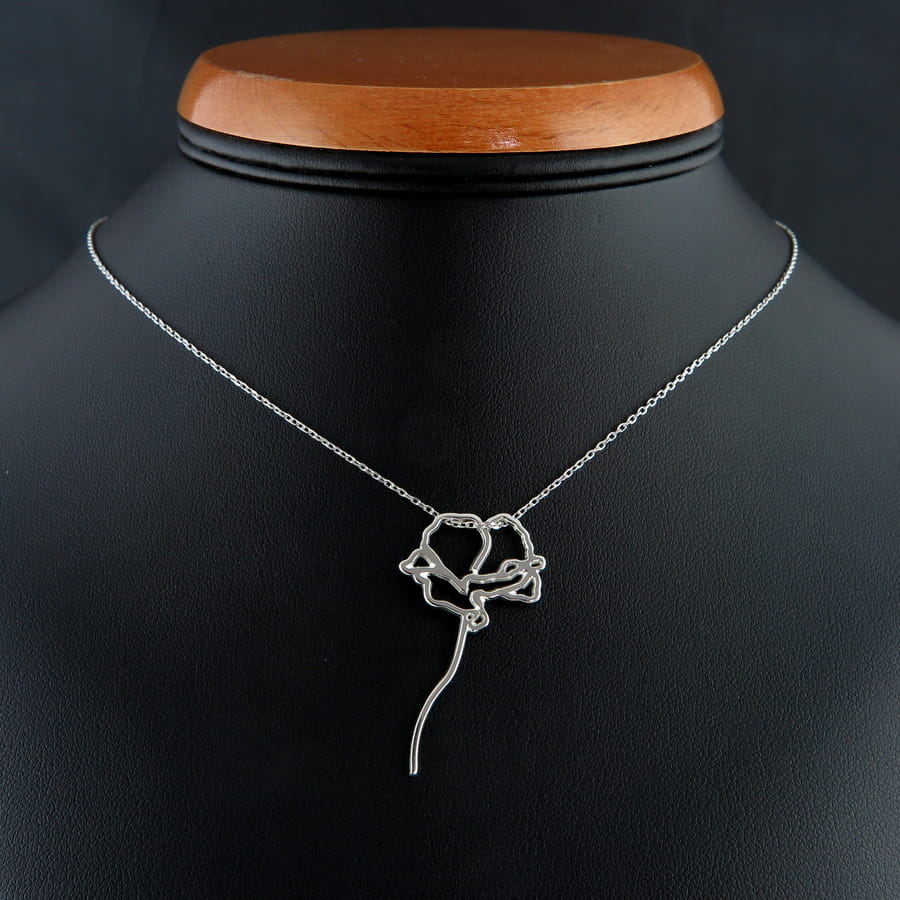 Na zamówienie klienta wykonaliśmy srebrny wisior w kształcie polnego maka. Czerwcowa letnia inspiracja została zaprojektowana w naszej pracowni a szkic zaakceptowany przez klienta. Wisior wykonano ze srebra próby 925, ma on wymiary 19 × 35 mm, grubszy srebrny arkusz zapewnia stabilność ażurowej formy. Zawieszkę wykończono na wysoki połysk.