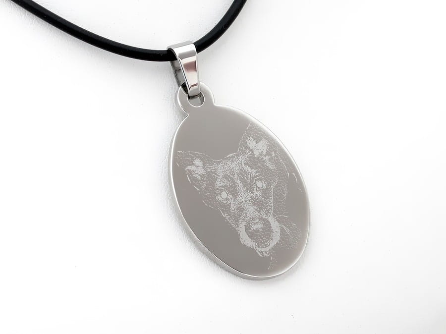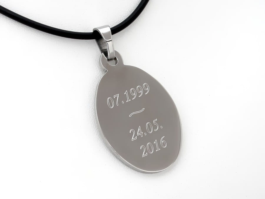 Ze względu na właściwości stal szlachetnej, zawieszka ta doskonale nadaje się pod grawerowanie zdjęć. Wisiorek z obu stron posiada równy, lustrzany poler, co sprawia, że wygrawerowane zdjęcie bliskiej osoby jest wyraźne i prezentuje się bardzo elegancko. Zawieszka ta ma 2 mm grubości i już pierwszy raz trzymając tę zawieszkę w dłoni poczujemy, że jest solidna i dokładnie wykończona. W porównaniu do srebra, stal jest dużo trwalszym materiałem i taka zawieszka znacznie dłużej zachowa swój idealny wygląd, a utrwalony przy użyciu diamentu obraz staje się praktycznie wieczny. Wykonanie ze stali szlachetnej zapewni również wysoką antyalergiczność i gwarantuje, że powierzchnia jest odporna na działanie czynników chemicznych, dzięki czemu nie będzie ona ciemnieć ani pokrywać się patyną. Zawieszki z tej kateogrii nie są niczym powlekane i nie ma tutaj efektu "wytarcia się" z czasem wierzchniej warstwy, jak w przypadku zawieszek rodowanych lub niklowanych.