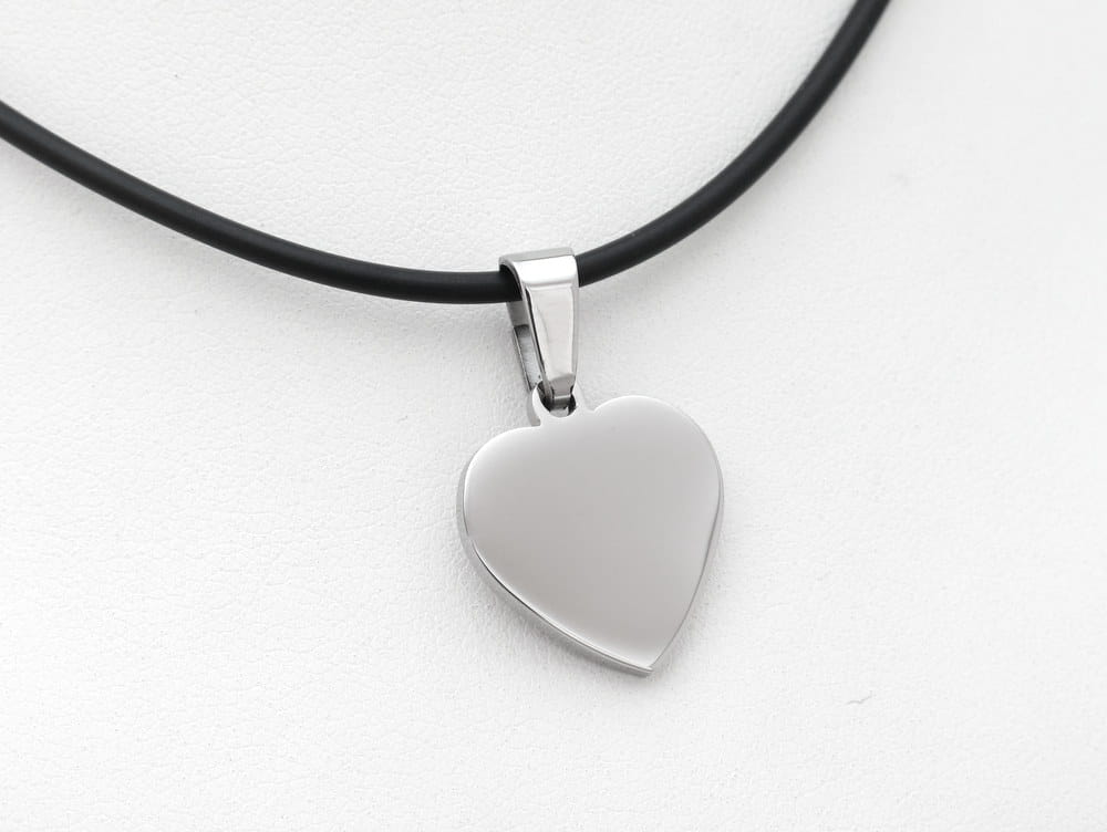 Stalowa zawieszka w kształcie serca. Jest to najmniejsza z dostępnych zawieszek w tej formie. Obie jej strony nadają się pod grawerunek tekstu i zdjęcia. Cała zawieszka jest wypolerowana, a trójkątna przelotka na łańcuszek jest na tyle duża, że spokojnie zmieści w sobie łańcuszek o szerokości splotu do 6mm.