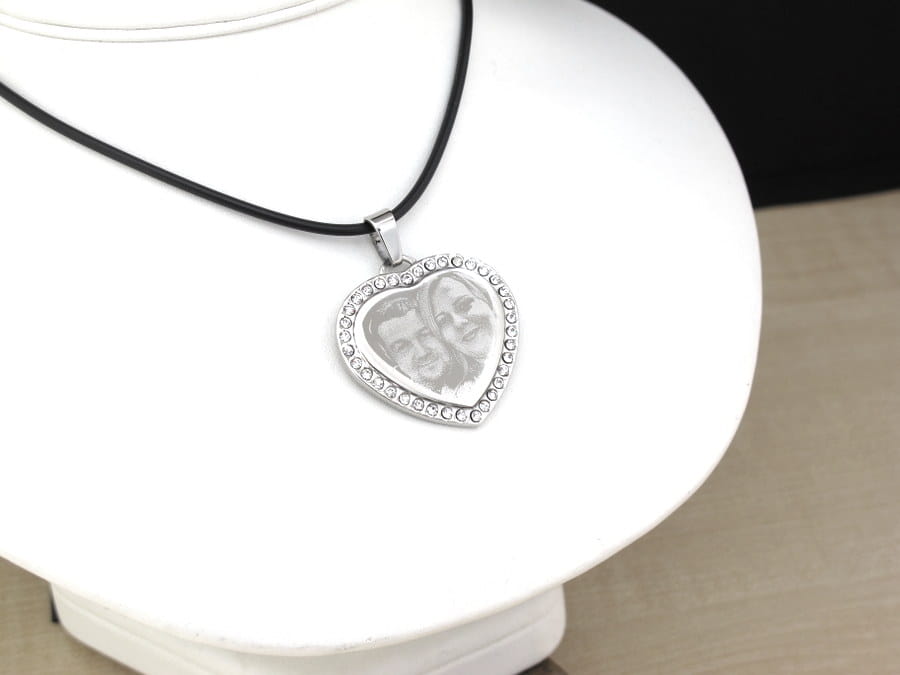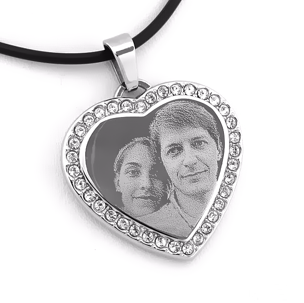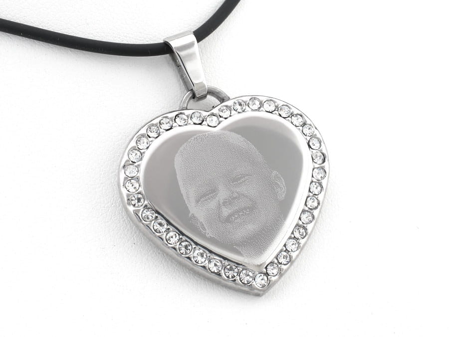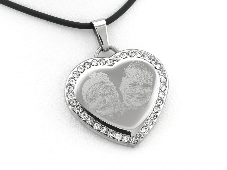 Wisior serce z cyrkoniami - grawer zdjęcia i dedykacji