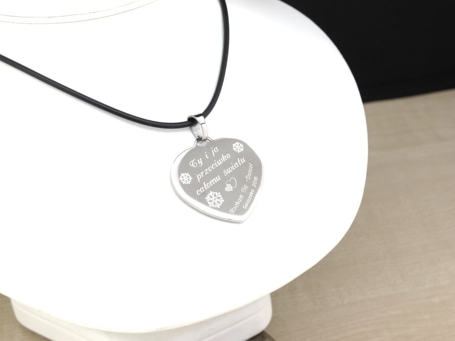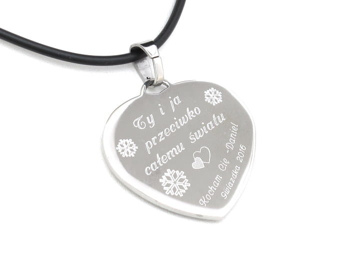 Ze względu na właściwości stal szlachetnej, zawieszka ta doskonale nadaje się pod grawerowanie zdjęć. Wisiorek z obu stron posiada równy, lustrzany poler, co sprawia, że wygrawerowane zdjęcie bliskiej osoby jest wyraźne i prezentuje się bardzo elegancko. Zawieszka ta ma 2 mm grubości i już pierwszy raz trzymając tę zawieszkę w dłoni poczujemy, że jest solidna i dokładnie wykończona. W porównaniu do srebra, stal jest dużo trwalszym materiałem i taka zawieszka znacznie dłużej zachowa swój idealny wygląd, a utrwalony przy użyciu diamentu obraz staje się praktycznie wieczny. Wykonanie ze stali szlachetnej zapewni również wysoką antyalergiczność i gwarantuje, że powierzchnia jest odporna na działanie czynników chemicznych, dzięki czemu nie będzie ona ciemnieć ani pokrywać się patyną. Zawieszki z tej kateogrii nie są niczym powlekane i nie ma tutaj efektu "wytarcia się" z czasem wierzchniej warstwy, jak w przypadku zawieszek rodowanych lub niklowanych.