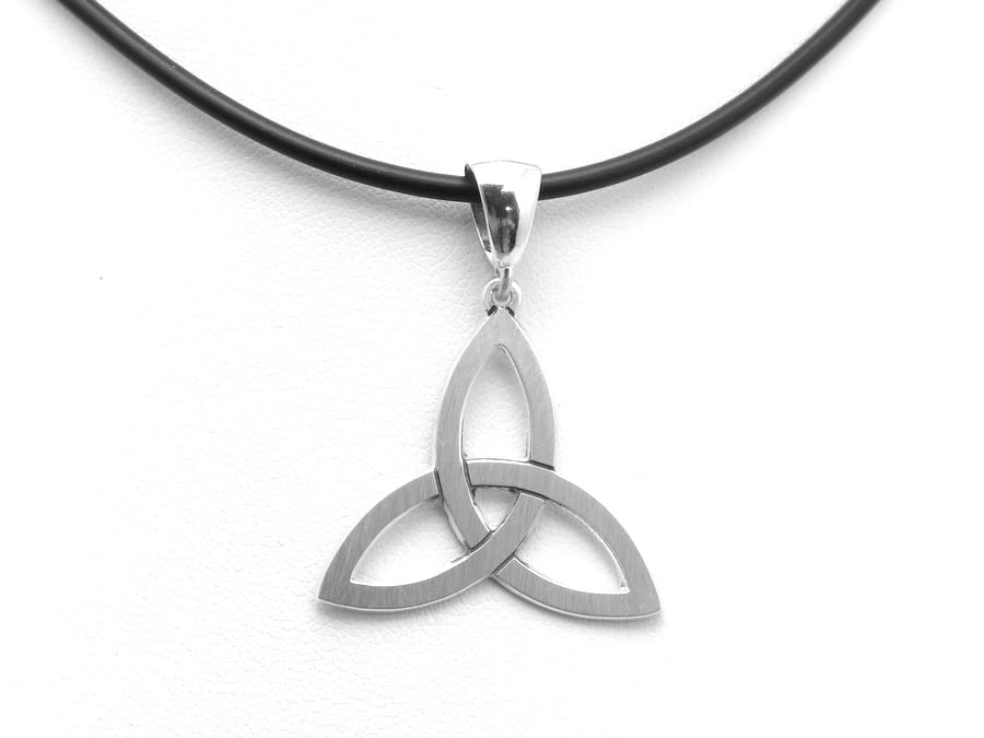 Na zamówienie wykonaliśmy wisior ze znakiem Triquerta. Zawieszka została wykonana ze srebrnego arkusza próby 925. Po ustaleniu z klientem wymiarów przystąpiliśmy do pracy. \Wyfrezowany przedmiot został wypolerowany a przejścia między elementami za oksydowane. Boki wisiora pozostawiliśmy błyszczące a front i tył wykończony został satyną. Dzięki takiemu wykończeniu zawieszka nie będzie „łapała” odcisków palców.