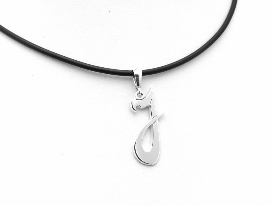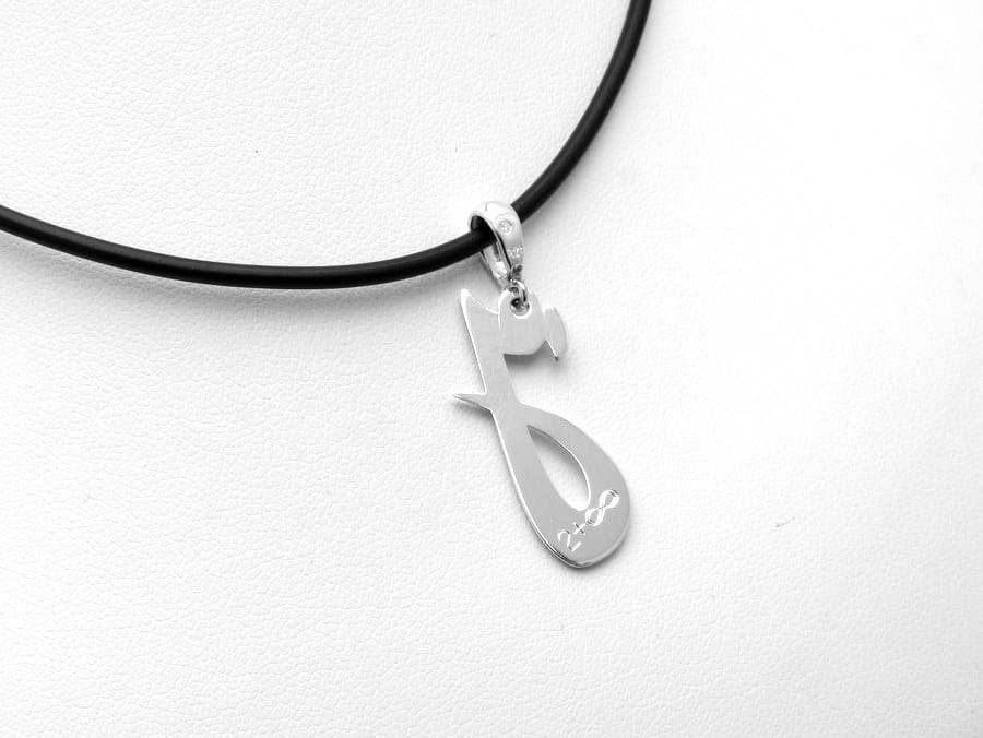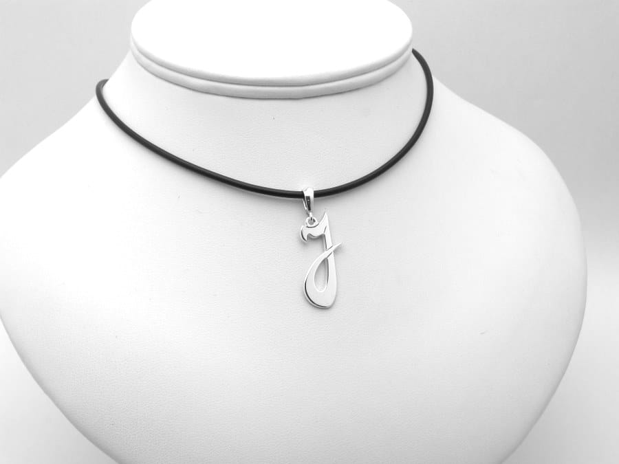 Zawieszkę w kształcie litery J, w wysokość ok 3 cm wykonaliśmy w naszej pracowni. Projekt powstał według przesłanego pomysłu i przykładu. Gotowy szkic wraz z kilkoma wariantami i wyceną przesłaliśmy do oceny. Ostatecznie klientka wybrał wersję widoczną na zdjęciach. Całość wykonana jest ze srebra próby 925, wykończona na wysoki połyskoraz opatrzona osobistym grawerunkiem. Na koniec wysłaliśmy zdjęcia gotowego naszyjnika do oceny.