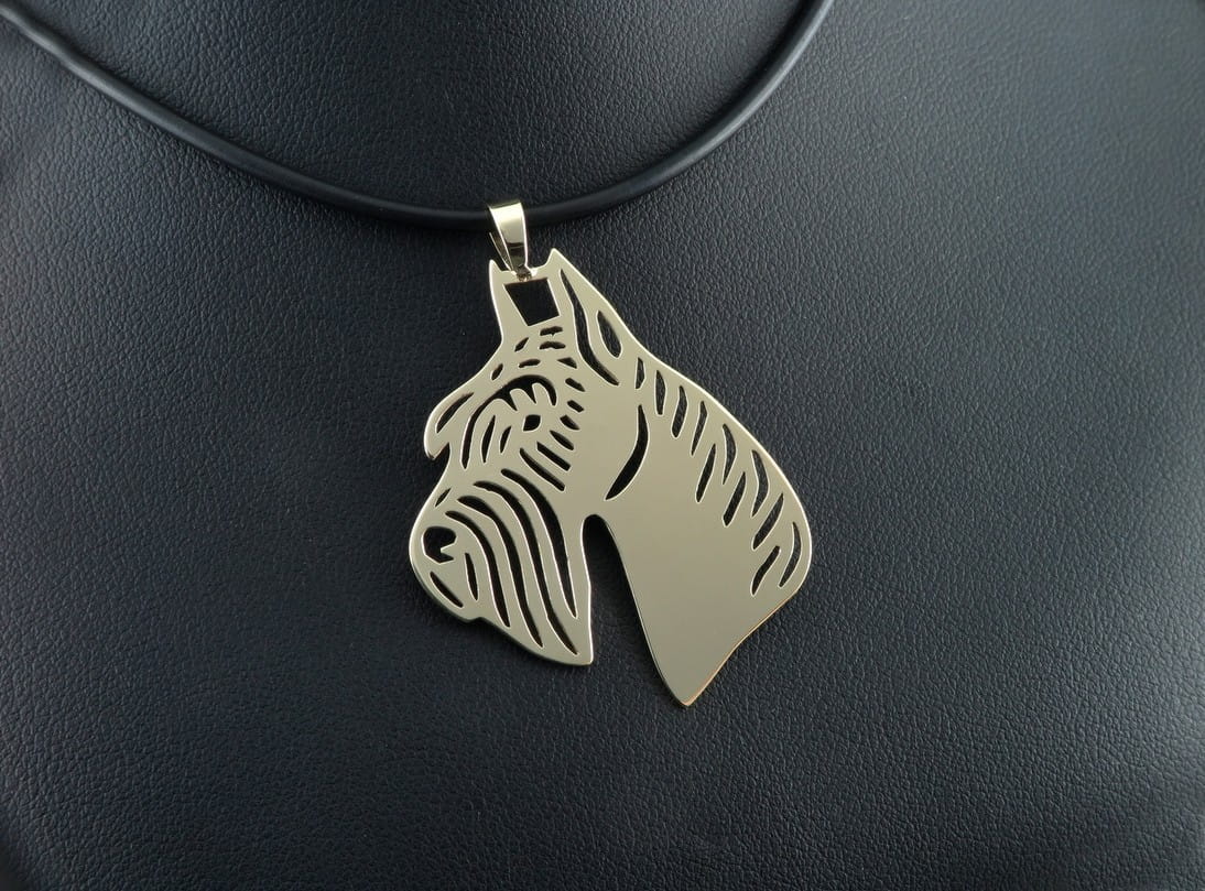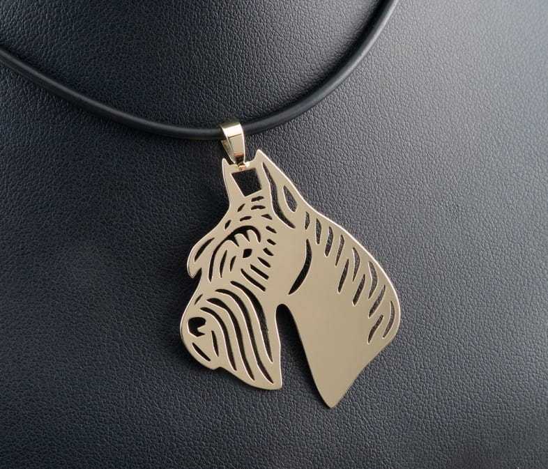 Na życzenie klienta wykonaliśmy złotą ażurową zawieszkę w kształcie głowy pupila. Ażurowa zawieszka przedstawia głowę sznaucera i wykonana jest z grubszego złotego materiału w próbie 585. Po przygotowaniu projektu i ustaleniu szczegółów przystąpiliśmy do pracy. Zawieszka została wykonana metodą wycinania laserowego, co pozwoliło na uzyskanie bardzo szczegółowej formy. Wisior wypolerowano i opatrzono okolicznościową dedykacją. Jeśli mają Państwo pomysł na spersonalizowaną biżuterię, zapraszamy do kontaktu.