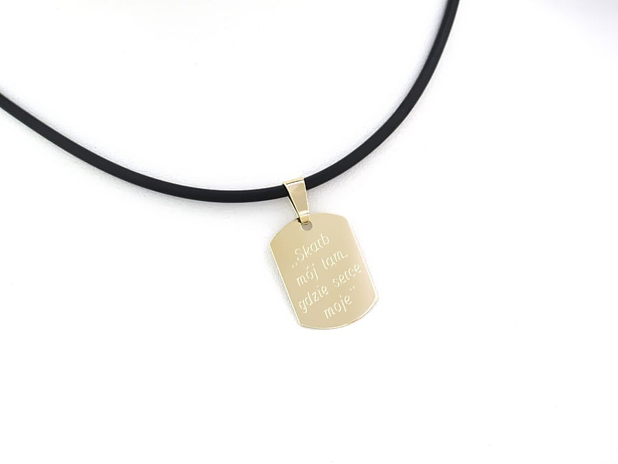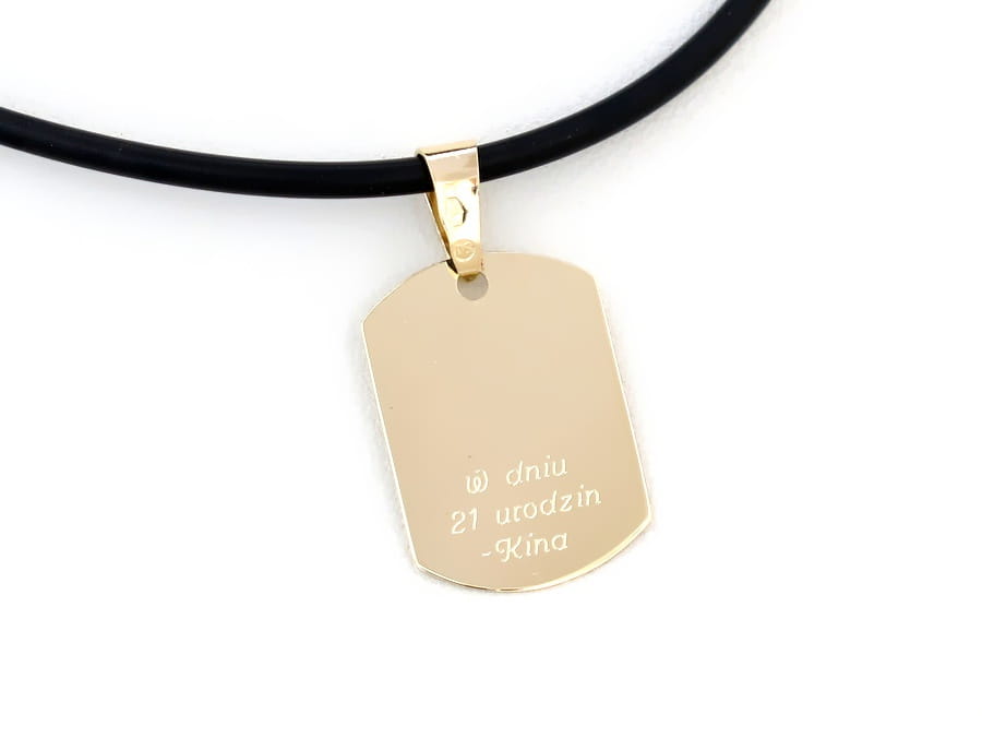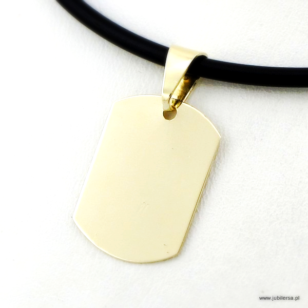Zawieszka do łańcuszka z żółtego złota pr. 585 w kształcie nieśmiertelnika. Wykonana w całości w naszej pracowni złotniczej. Trójkątna krawatka pozwoli na zawieszenie na złotym łańcuszku o splocie do 3 mm szerokości. (przykładowy kauczukowy naszyjnik widoczny na zdjęciach ma średnicę 2 mm).