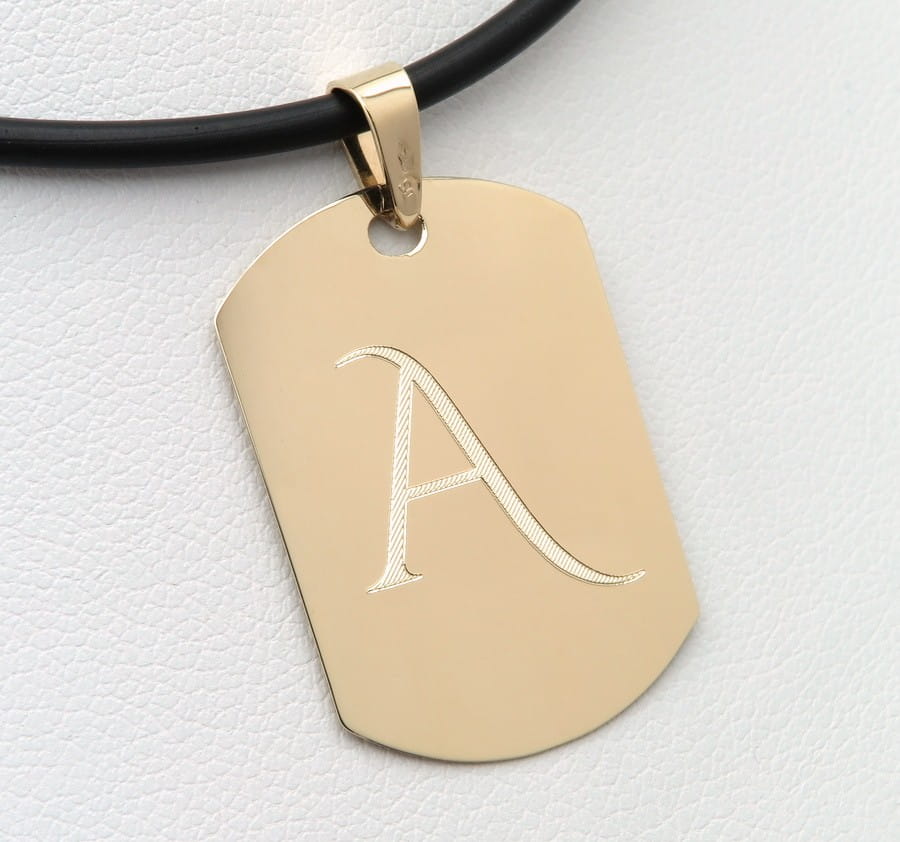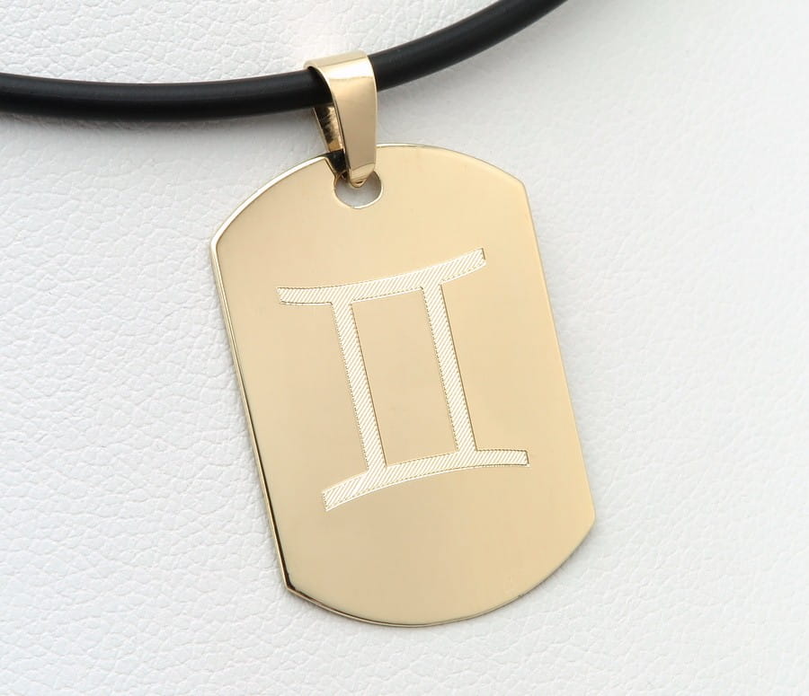 Złoty nieśmiertelnik z inicjałem i znakiem zodiaku